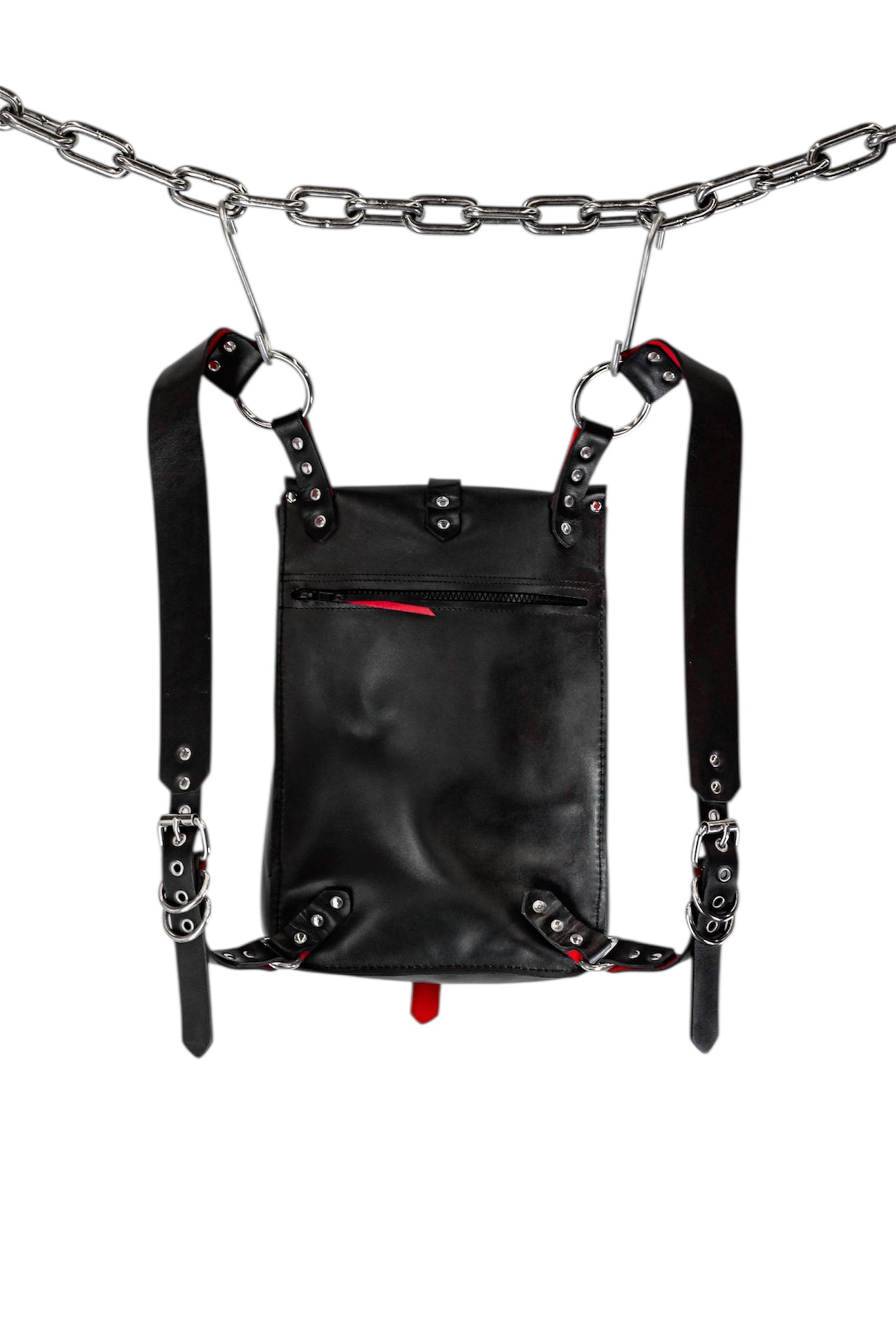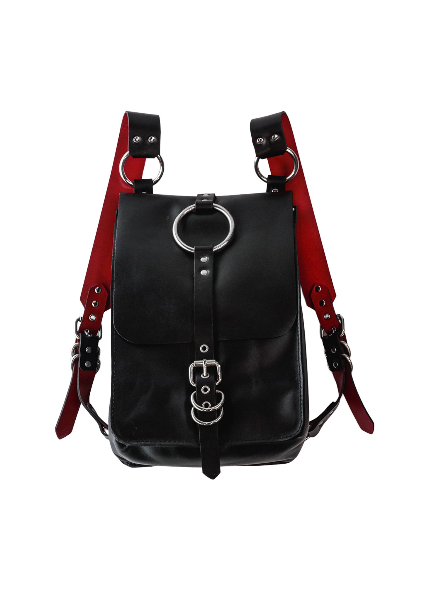 This Backpack is made from supple 1mm thick cowhide with a satin gloss finish. It has a single buckle closure and adjustable shoulder straps lined with red leather. The firm 40mm wide shoulder straps distribute the weight of the full bag evenly and prevents strain. All seams are secured with adhesive as well as a tight nylon machine stitch.