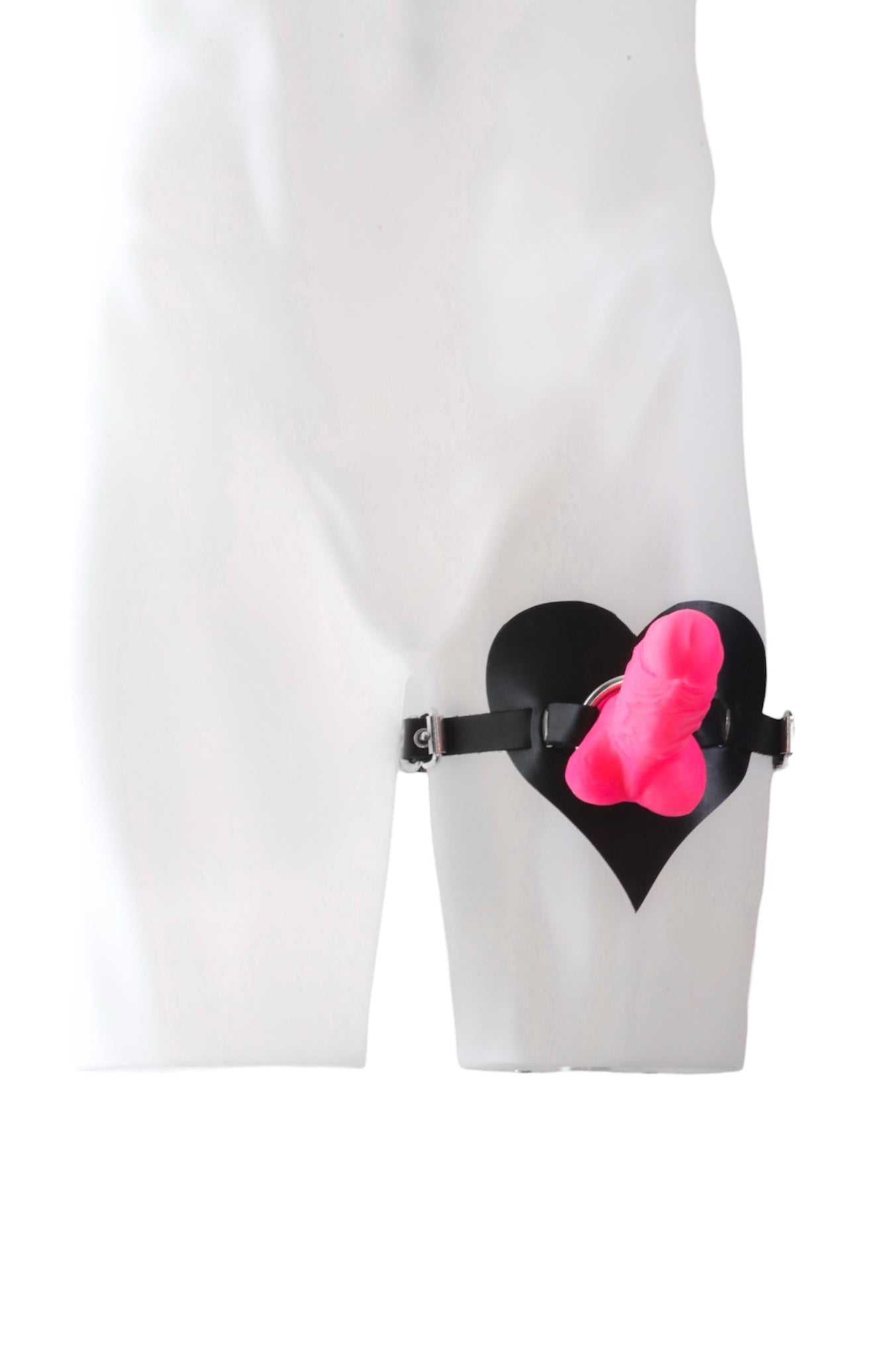 This design can be worn on a thigh, strapped around a pillow or chair, or anything you need a toy to be anchored to.